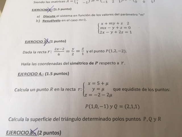 luego, reemplazas los valores de los parámetros m y t en las ecuaciones paramétricas de las rectas y queda: