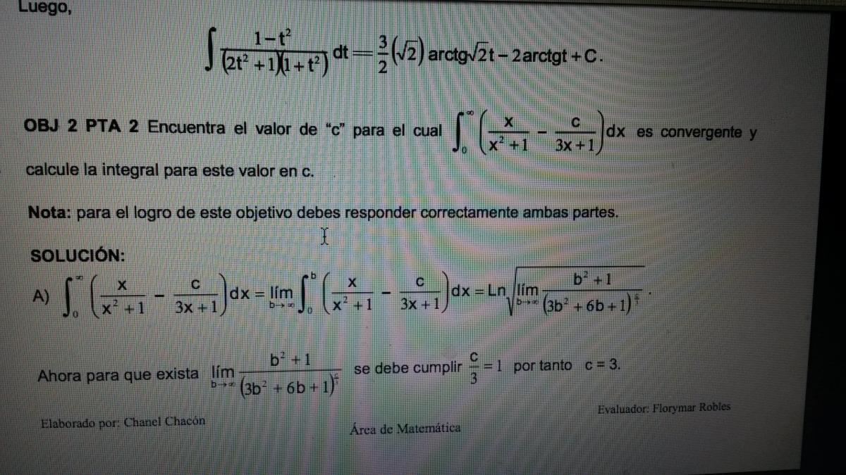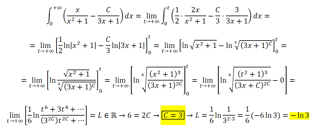 Tengo un ejecicio de integrales impropias que salió en un examen donde preguntan hallar el valor de C para que la integral converga y luego calcular el límite con ese valor de C (No logro entender la última parte donde sale LN y la raíz cuadrada. Adjunto imagen. Sería bueno hacer un vídeo en youtube con la explicación para todos los unicoos