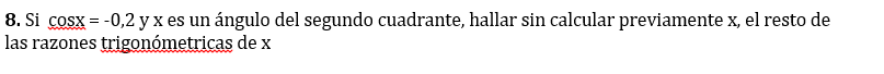 Mi pregunta es: ¿podría calcular las demás razones usando las identidades trigonométricas sin tener en cuenta la frase de "y x es un ángulo del segundo cuadrante, hallar sin calcular previamente x".O si no, ¿para qué me sirve esa información?
