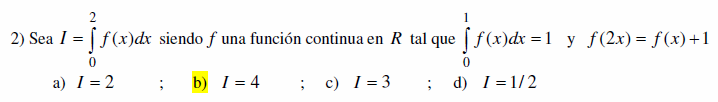 I = ∫ f(x) dx = sustituyes = ∫ f(2w) 2dw = 2 ∫ f(2w) dw = aplicas la última ecuación el enunciado y queda: