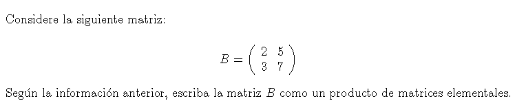 Luego, recuerda que a cada matriz elemental las obtienes aplicándole a la matriz identidad de orden dos (I2) la operación elemental correspondiente: