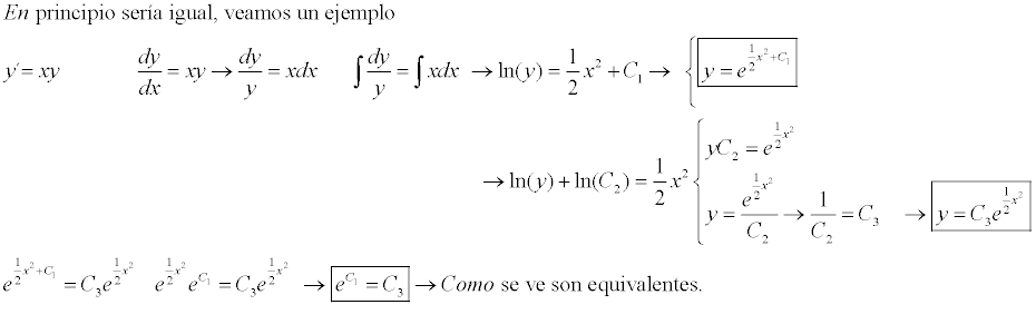 Cuando integran colocan la constante "C" al lado izquierdo, yo lo realicé colocandola al lado derecho pero no me da el mismo resultado. ¿Es válido esto o tengo yo un error en mi procedimiento?