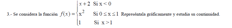 Pero observa que no es continua en x = 0, y si lo es en x = 1, que son los puntos de corte entre trozos
