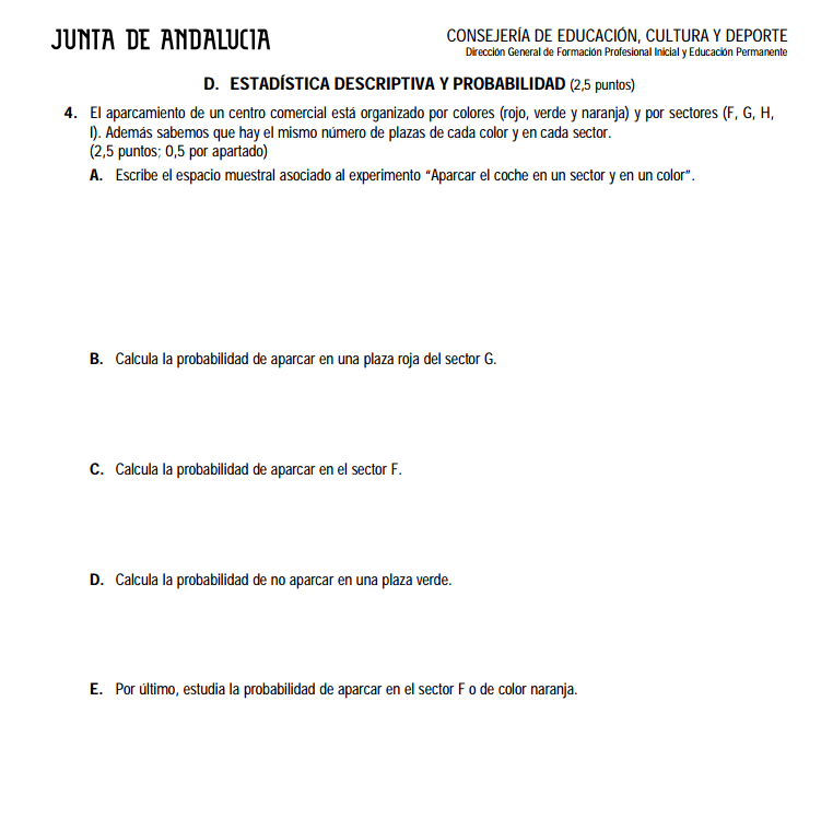 p(F) = p(G) = p(H) = p(I) = 1/4 (para los sectores).