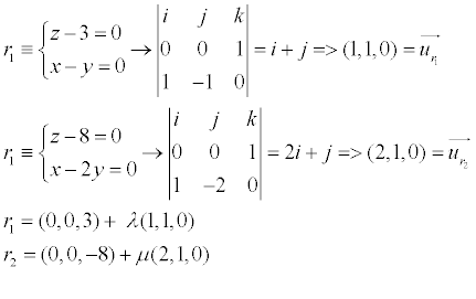 Intento multiplicarlos vectorialmente los dos planos por ejemplo en r, que me sale el vector 1 x i + 1 x j