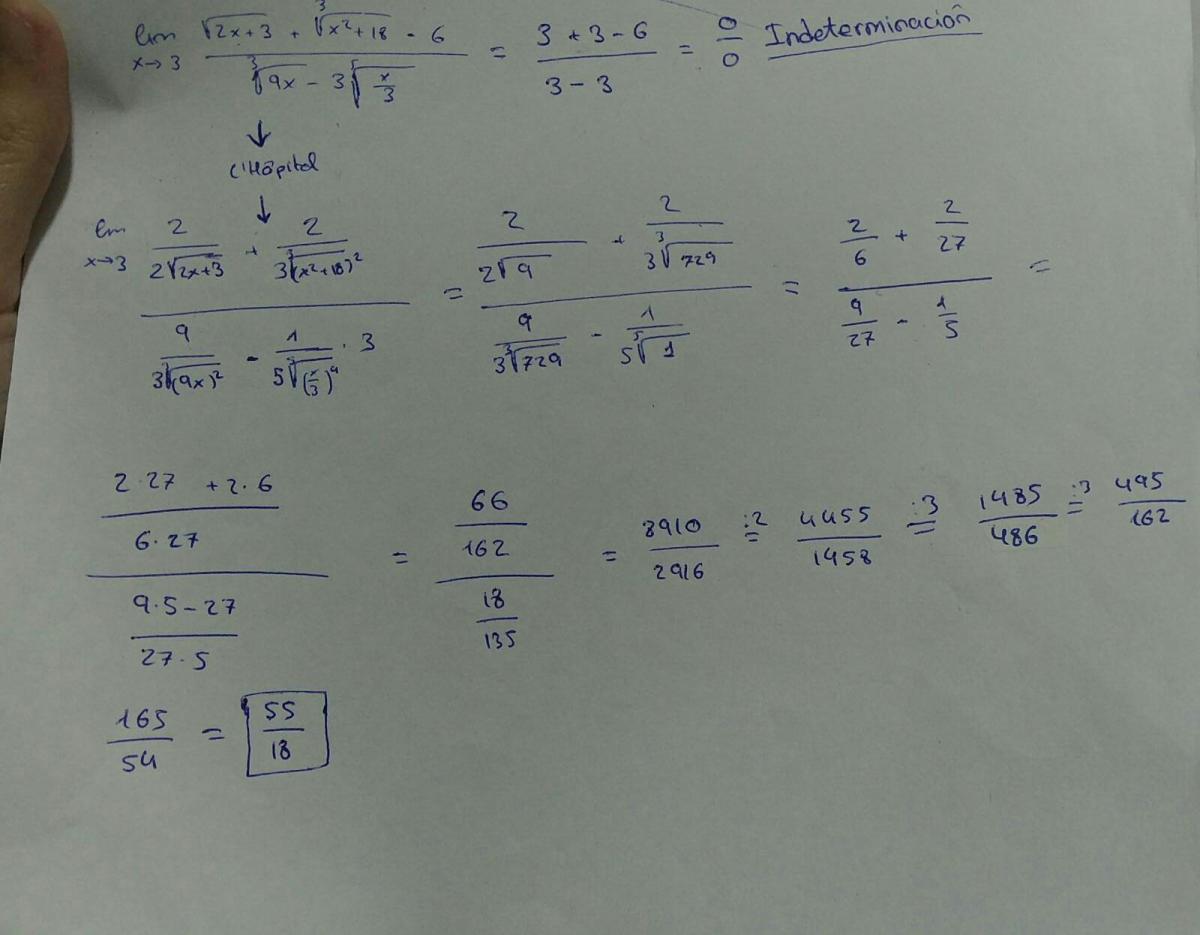 Después quitas factores comunes (si los hay) y si es necesario se repite el proceso del conjugado (imprescindible verificar siempre sustituyendo x por 3 en el caso de este ejercicio cada vez que se haga el conjugado, porque podríamos revertir el proceso que llevemos hasta ese punto...con el consiguiente lío en un ejercicio tan largo)