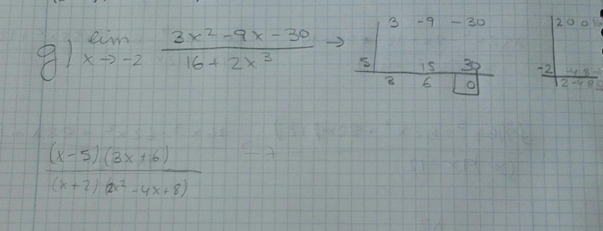 Lím(x→-2) (x - 5)*3*(x + 2) / (x + 2)*2*(x2 - 2x + 4) = simplificas y queda:
