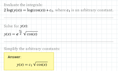 cosx * y ' = (- senx) / 2*y, escribes la expresión de la derivada como cociente de diferenciales y queda: