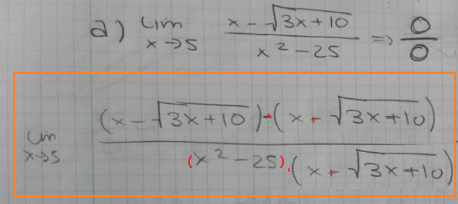 Tienes que hacer el conjugado cuando tienes indetermnación 0/0 tal y como explica David en el vídeo:
