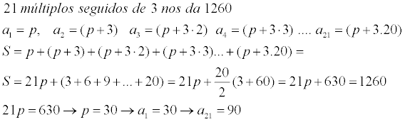 El enunciado también nos dice "Al sumar 21 múltiplos seguidos de 3 nos da 1260".