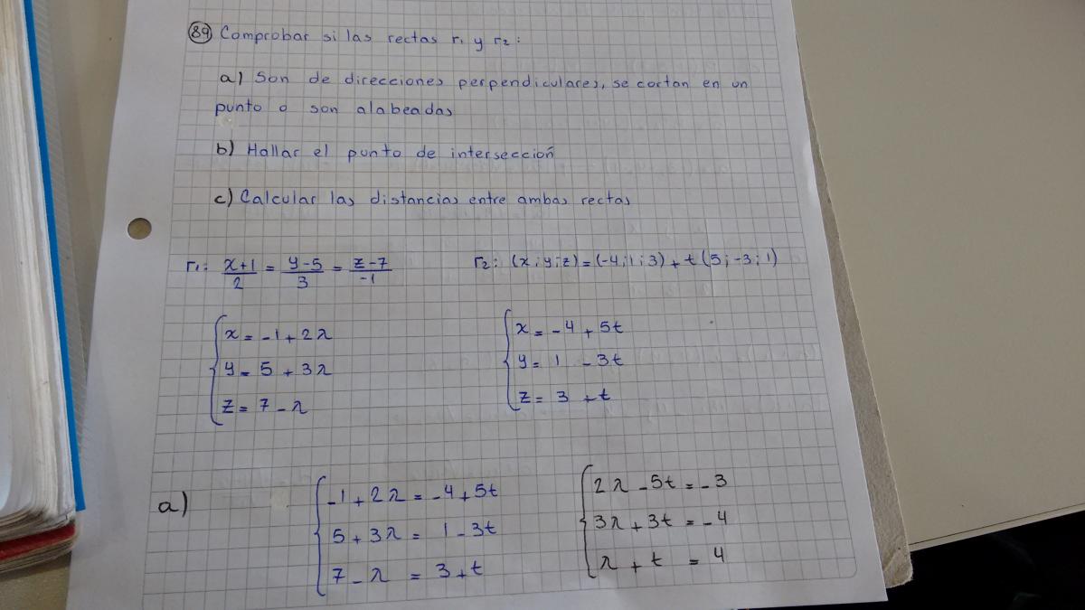 Buenas tardes, nuevamente por aquí, me encuentro con el siguiente ejercicio una duda en el cálculo de distancia, ya que tengo la fórmula para calcular distancias entre una "recta y un punto" y entre "dos rectas paralelas" quisiera que me den una mano en el ejercicio c. Muchas gracias y disculpen las molestias