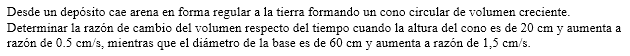 concluimos que el volumen está aumentando a razón de 450π cm3/s.