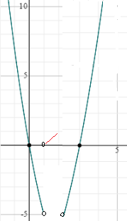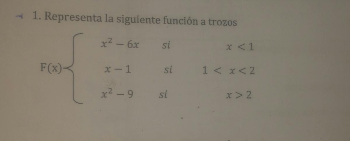 Los puntos para f(x) el intervalo x∈(-inf,1) se obtienen del trozo: x2-6x