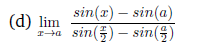 Buenas Tardes Unicos, quisiera que me ayudaran a resolver estos ejercicios de limites, sin derivar, intente en el de seno con seno suma, y angulo doble, pero no se como resolverlo ya que no se el valor de, y el de logaritmo Natural de x, no se como separarlo del coseno![]()