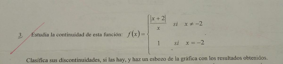 Cuando es distinta de -2 vale: |-2+2| / -2 = 0