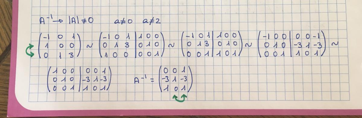 Buenos días, para calcular la inversa de la matriz A por el método de Gauss he cambiado la fila 2 por la 3 para tener en la posición 2,2 un número distinto de 0 y el resultado me da bien pero con las columnas 2 y 3 cambiadas, eso por qué es?, estaría bien? Muchas gracias.