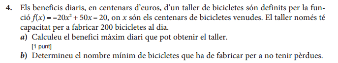 Màximo en x = 5/4 , lo sustituo para saber beneficios máixmo (11,25) x 100 = 1125 euros