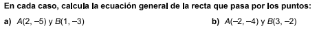Igualamos a 0: 2x+y+1=0 La ecuación general de la recta que pasa por esos dos puntos
