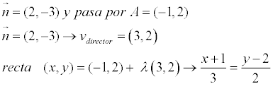 Después poner la ecuación continua de la recta que es x-2/-1 =y+5/2. Poniendo al lado de la x el punto a cambiado de signo y debajo el vector AB.