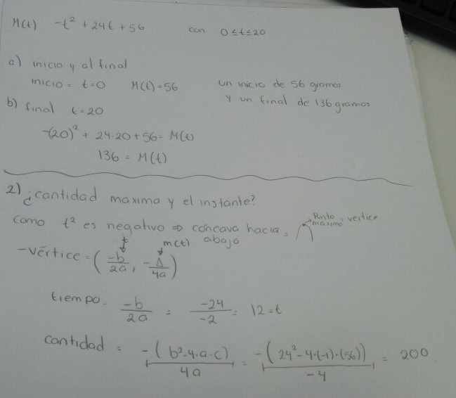M(t) = - t2 + 24 t + 56 0 ≤ t ≤ 20