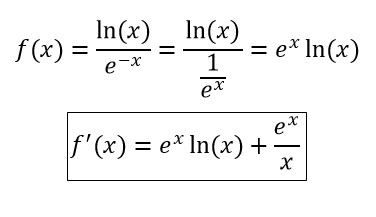 [(1/x)*e-x - Lnx*(-e-x)] / (e-x)2