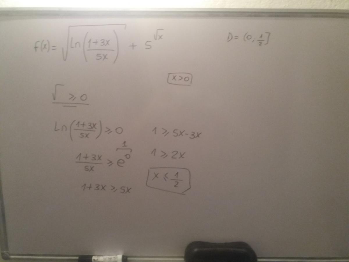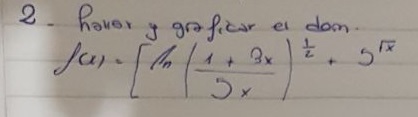 Fijate que para analizar la raíz de x que esta como exponente del 5, no pongo que es mayor o igual a 0 porque en 0 no está definida f(x) (el argumento del ln daría infinito)