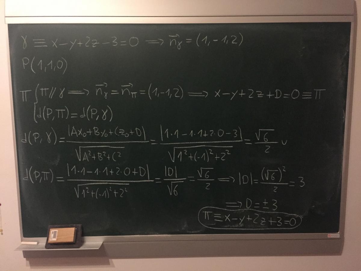 Determinar la ecuación del otro plano paralelo al plano que tambien dista del punto P
