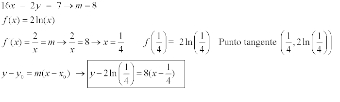 La pendiente m de la recta tangente a una curva se obtiene de evaluar la primera derivada en el punto dado.