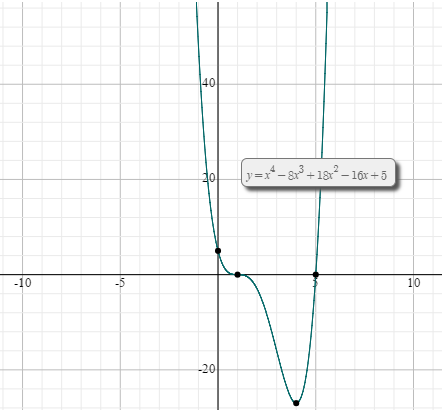 f(x)= x˄4 - 8x˄3 + 18x˄2 - 16x + 5