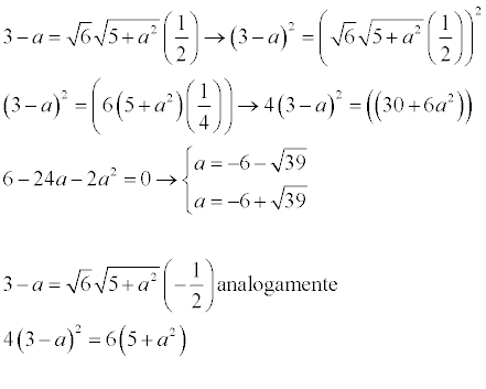 (3 - a)2 = ( √(6)*√(5 + a2)*(±1/2) )2,