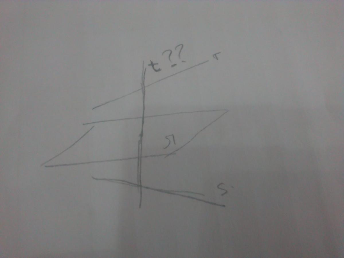 Luego, planteamos para el vector director de la recta t que es perpendicular a r y a s a la vez: