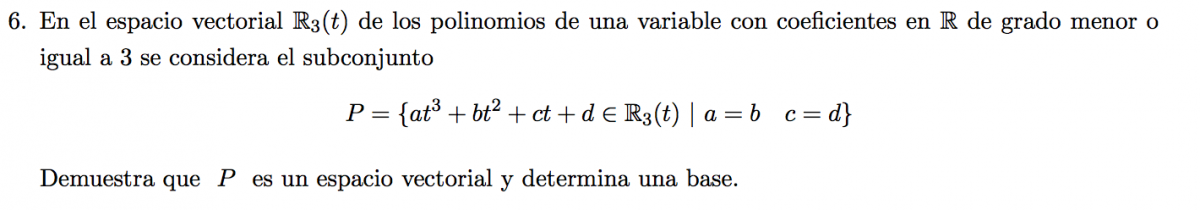 Luego, para determinar una base, tomamos un polinomio genérico del espacio vectorial P: