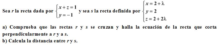 d(r,s) = | 2 - (-1) | = | 3 | = 3, que es la distancia entre las rectas r y s.