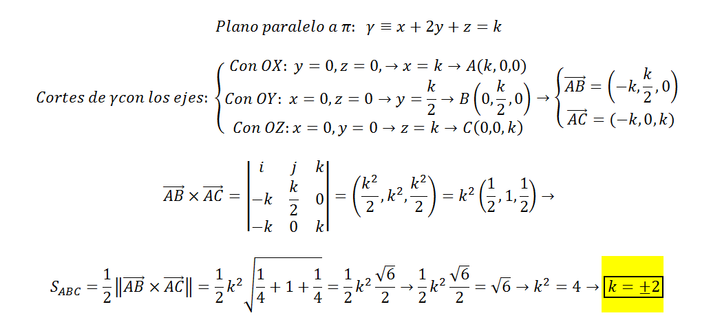 Por último, reemplazamos el valor remarcado en las ecuaciones paramétricas de la recta t y quedan:
