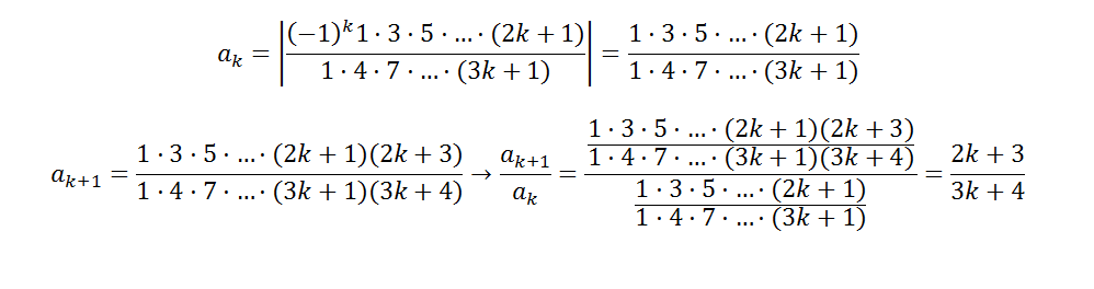 Utilice la prueba de relación para la convergencia absoluta para determinar si la serie es absoluta o diverge.