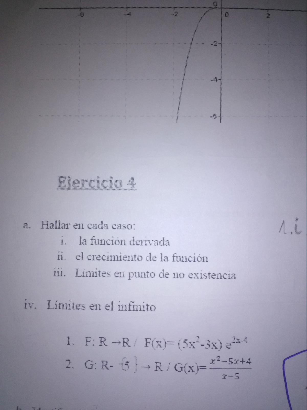 De este ejercicio pude hacer solo del ejercicio la parte de g(x), y del que tiene log neperiano solo llegue a realizar la derivada, luego no se como seguir.