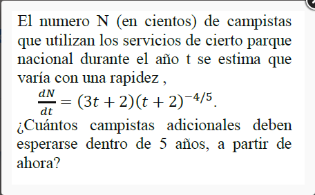 N(5) = ∫ dN = ∫ ( (3t+2)(t+2)-4/5 )*dt, para evaluar entre t = 0 y t = 5.