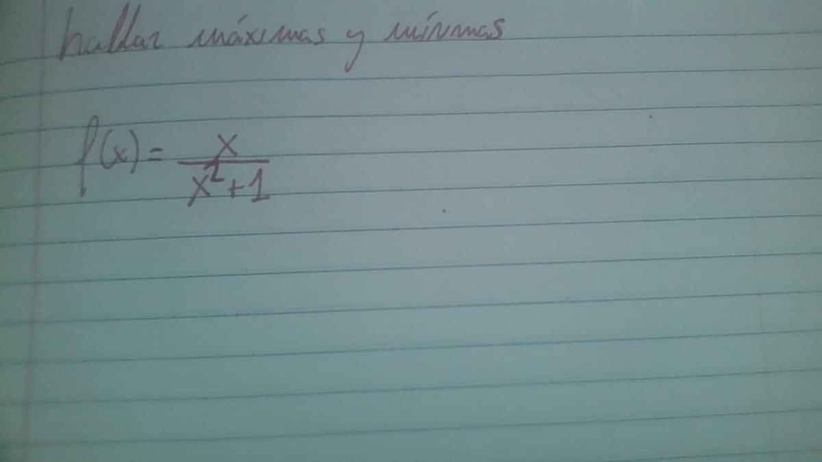 buenas! estoy empezando con las funciones y me he atascado en un concepto muy basico pero que no logro resolver, adjunto la foto con la funcion y me piden hallar maxima y minima, pts de corte etc.... mi pregunta es simple, en el denominador tengo x^2 + 1, puede la x^2 valer -1 para que la funcion no exista en ese punto o al estar al cuadrado siempre sera positiva y sera continua en todo R, gracias de antemano![]()