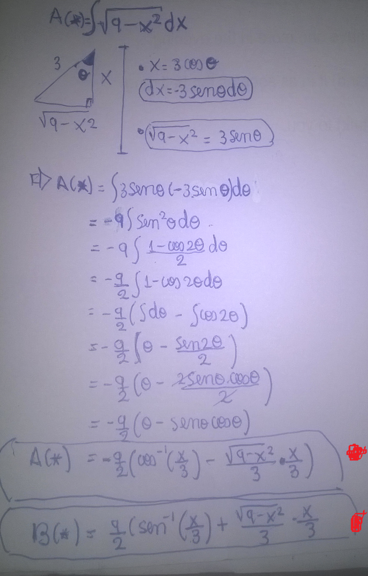 √x²-a² -> x=asecαSi quisiera encontrar primero los catetos mediante el triángulo como en el siguiente ejercicio. Me surge otra duda porque no sabría en que lugar poner el ángulo "θ"¿Daría la misma respuesta final?