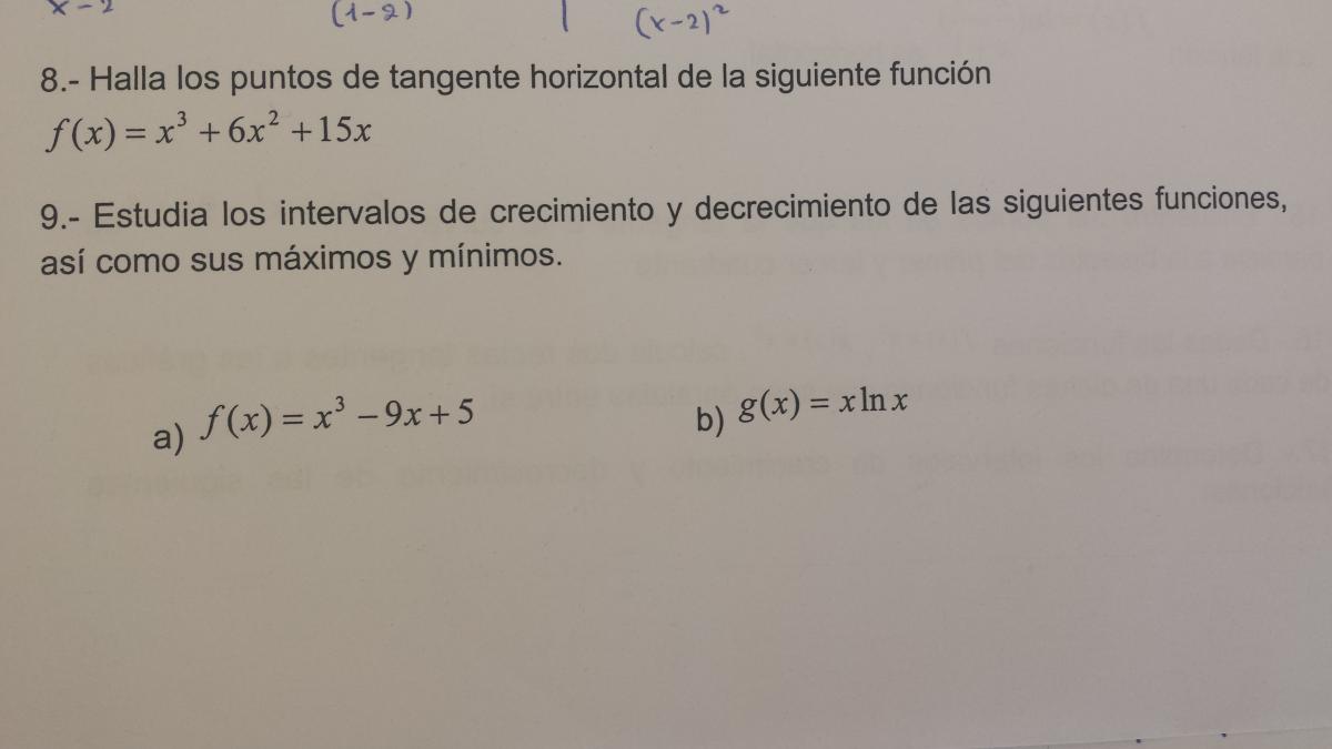 Formamos intervalos con x1 y x2 en la recta real y estudiamos el signo de la derivada en esos intervalos (si f´(x)<0 decreciente, si es positiva creciente y si es cero como en las x1 y x2 punto de inflexión)