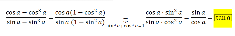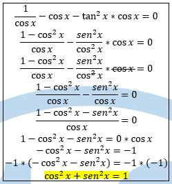 y = ( 1 - (cos2x + sen2x) )/cosx, sustituyes los términos remarcados según la identidad fundamental (también llamada pitagórica) y queda: