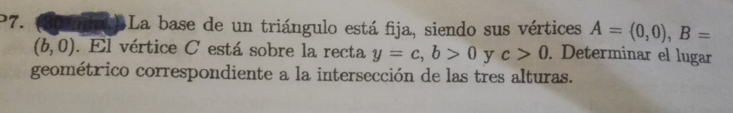 Entonces el lugar geométrico (en concreto corresponde a una parábola) de la intersección de las 3 alturas es:
