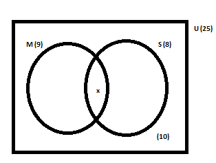 p(MuS) = p(M) + p(S) - p(M∩S) = x, reemplazamos valores y queda:
