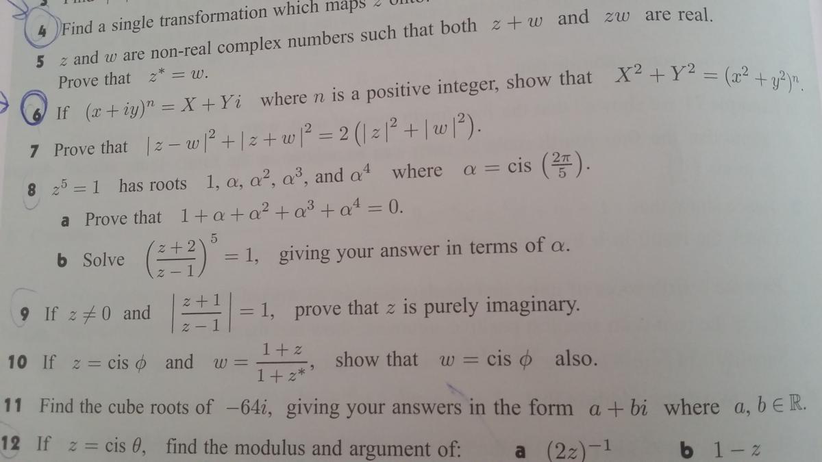 Tengo mis examenes finales dentro de nada y no entiendo los numeros complejos. En particular no entiendo el ejercicio 6 y el ejercicio 8 de la imagen. Cómo se hace?