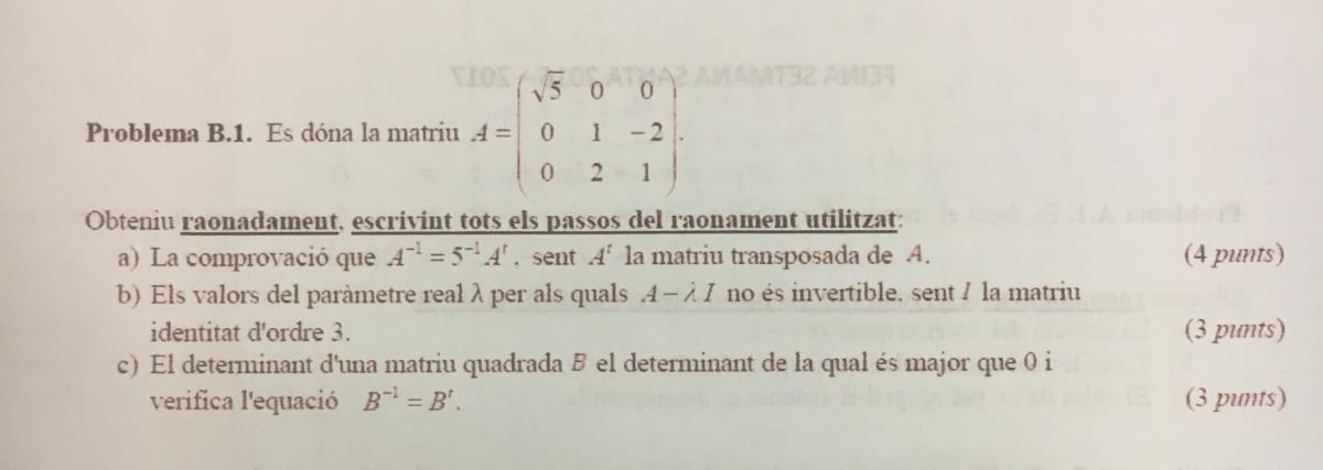 c1) - 1 = b, que no corresponde a este problema, ya que tenemos en el enunciado que el determinante de la matriz B es mayor que cero,