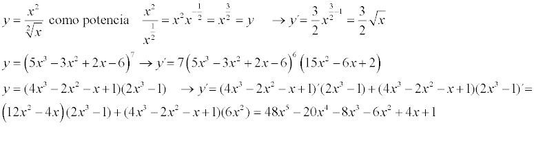 u = 5x3 - 3x2 + 2x - 6, cuya derivada queda: u ' = 15x2 - 6x + 2,