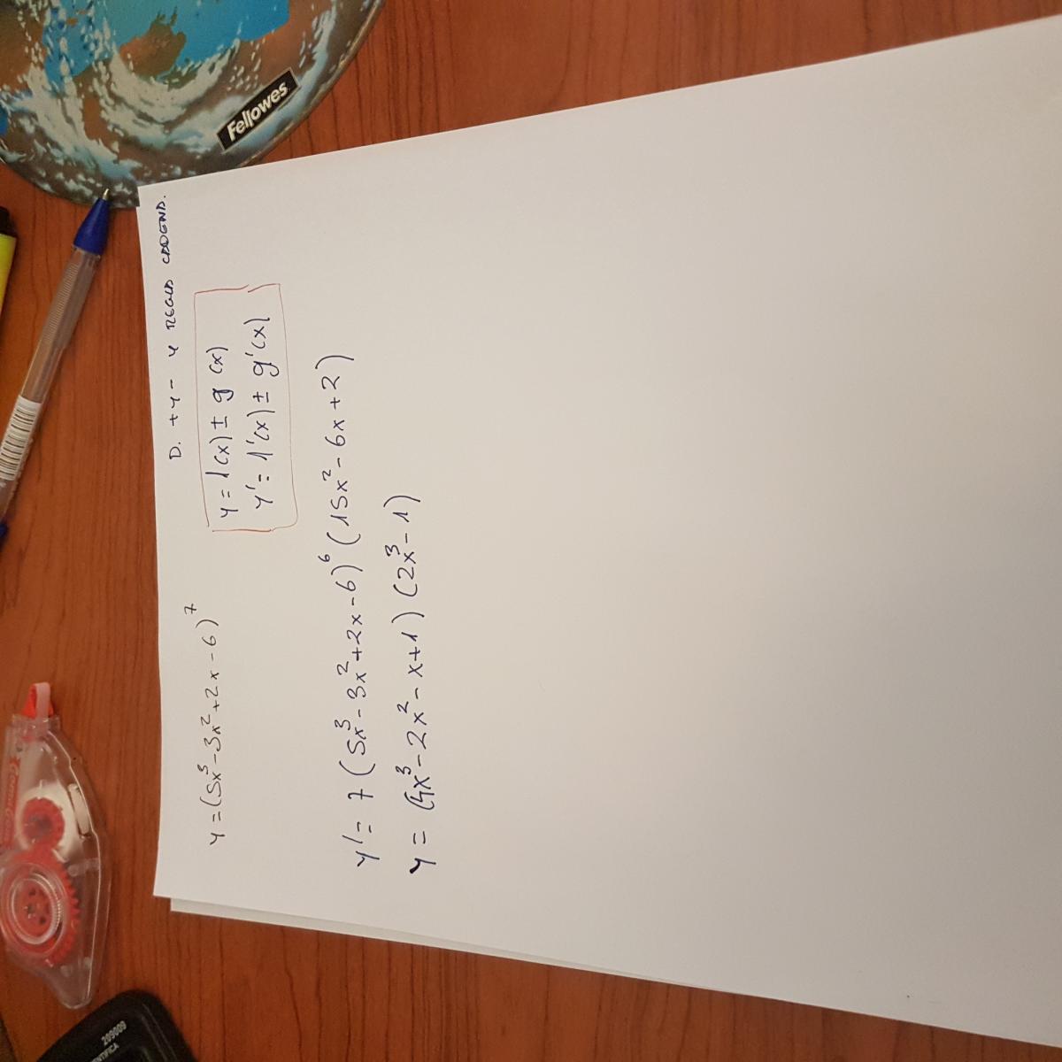 y ' = 7(5x3 - 3x2 + 2x - 6)6*(15x2 - 6x + 2).