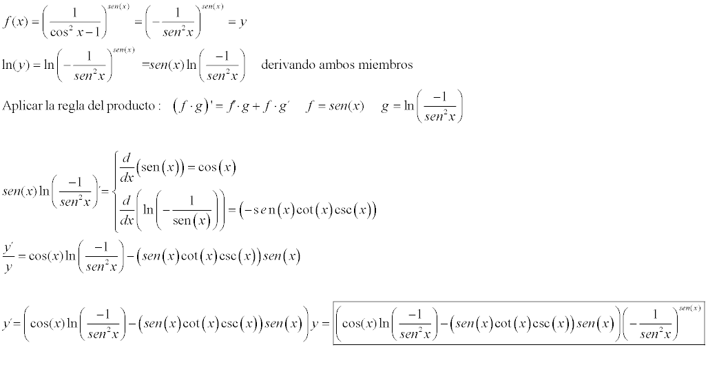 y = u*v, cuya derivada queda: y ' = u ' * v + u * v '(1),