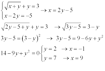 a) y = 2, que al reemplazar en la ecuación señalada (1) conduce a: x = - 1, que se verifica en el sistema de ecuaciones del enunciado;