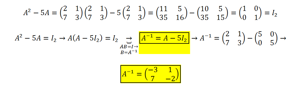 a) Compruebe que cumple la igualdad A2 - 5A = I2, donde I2 es la matriz identidad